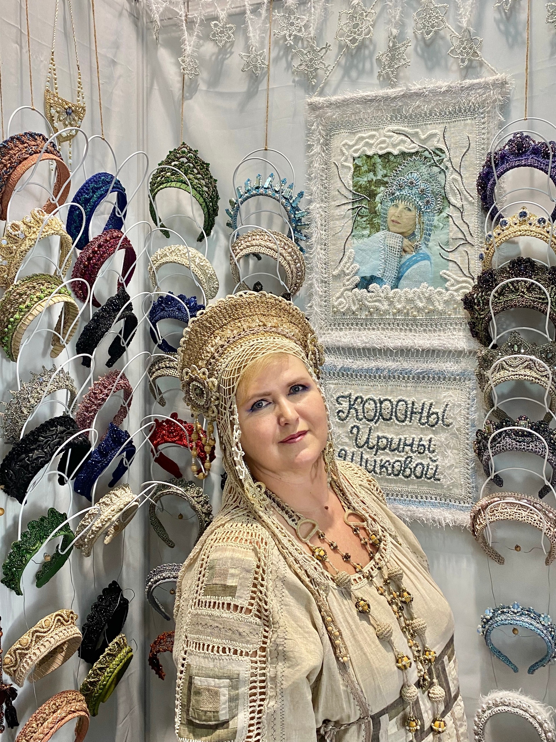Республика Крым представляет сумки-талисманы Татьяны Михальченко (бренд «ТатМи») — ручная работа в техниках вышивки и вязания с бисером. Также на стенде — экспозиция художественного литья из бронзы.