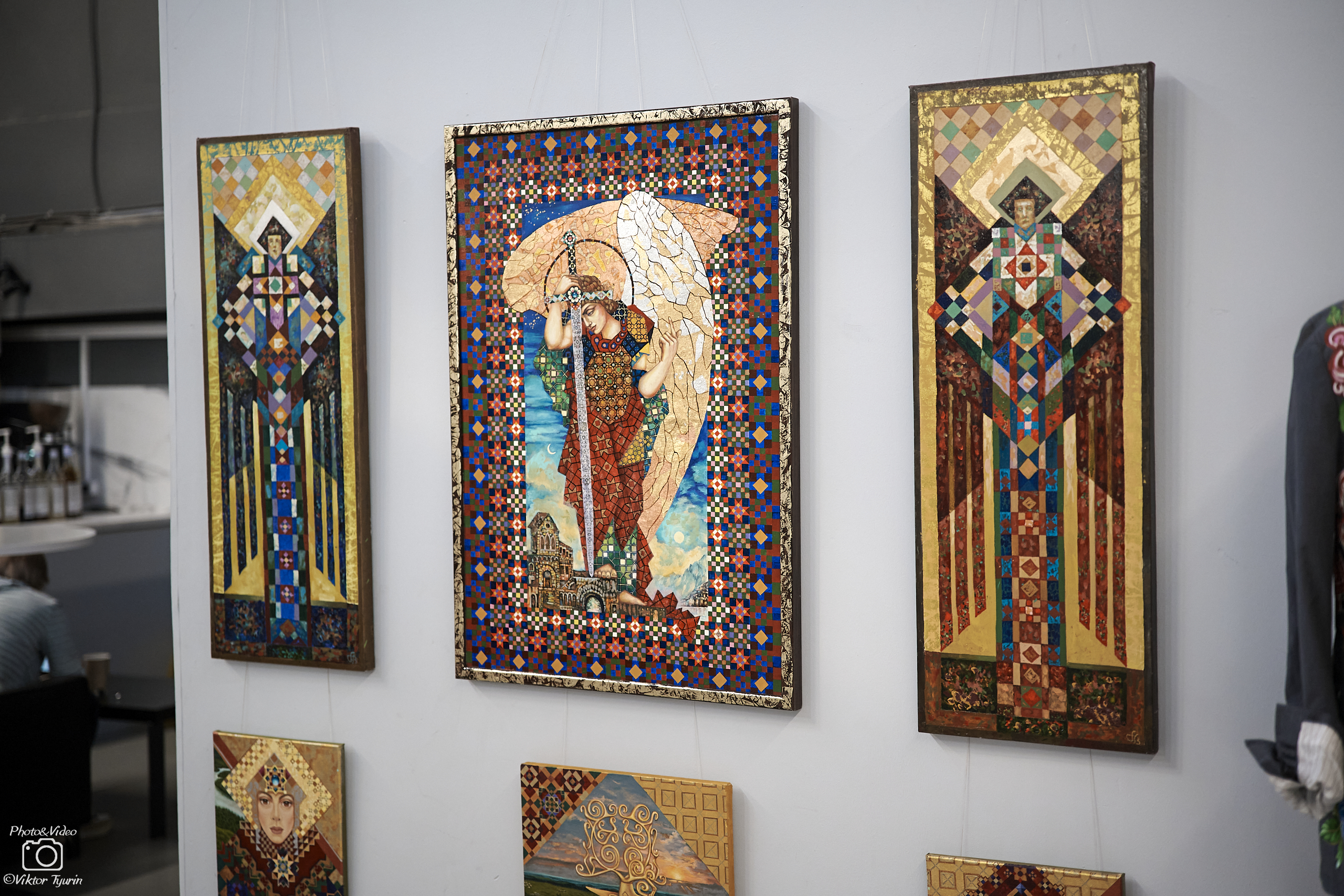 Впервые на выставке — полотна Владимира Пронина, основателя стиля «Орнаментальный неосимволизм» (ОРНЕОС). QR-коды в его картинах становятся эстетическими единицами, соединяя древние мотивы с цифровым языком XXI века.