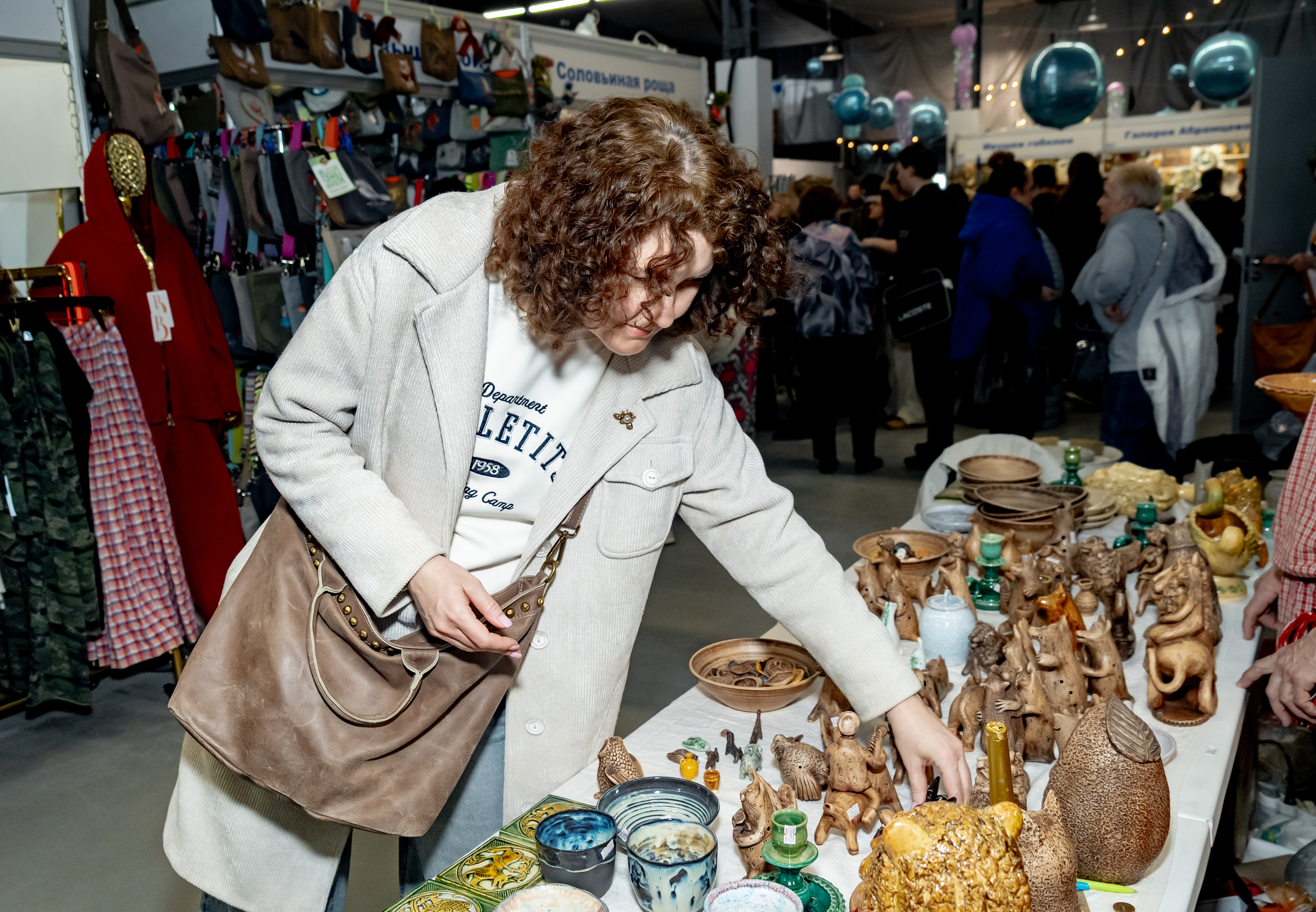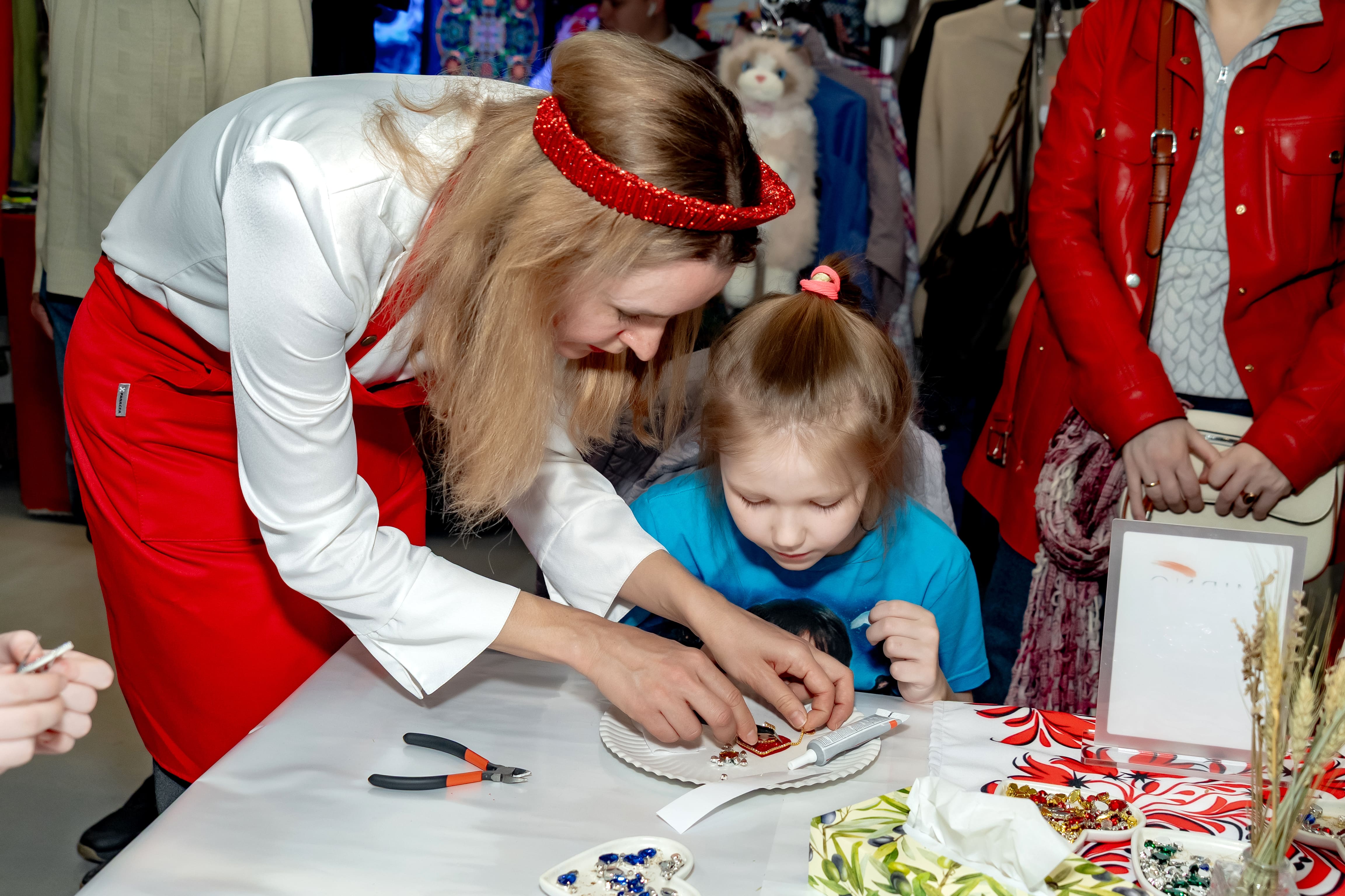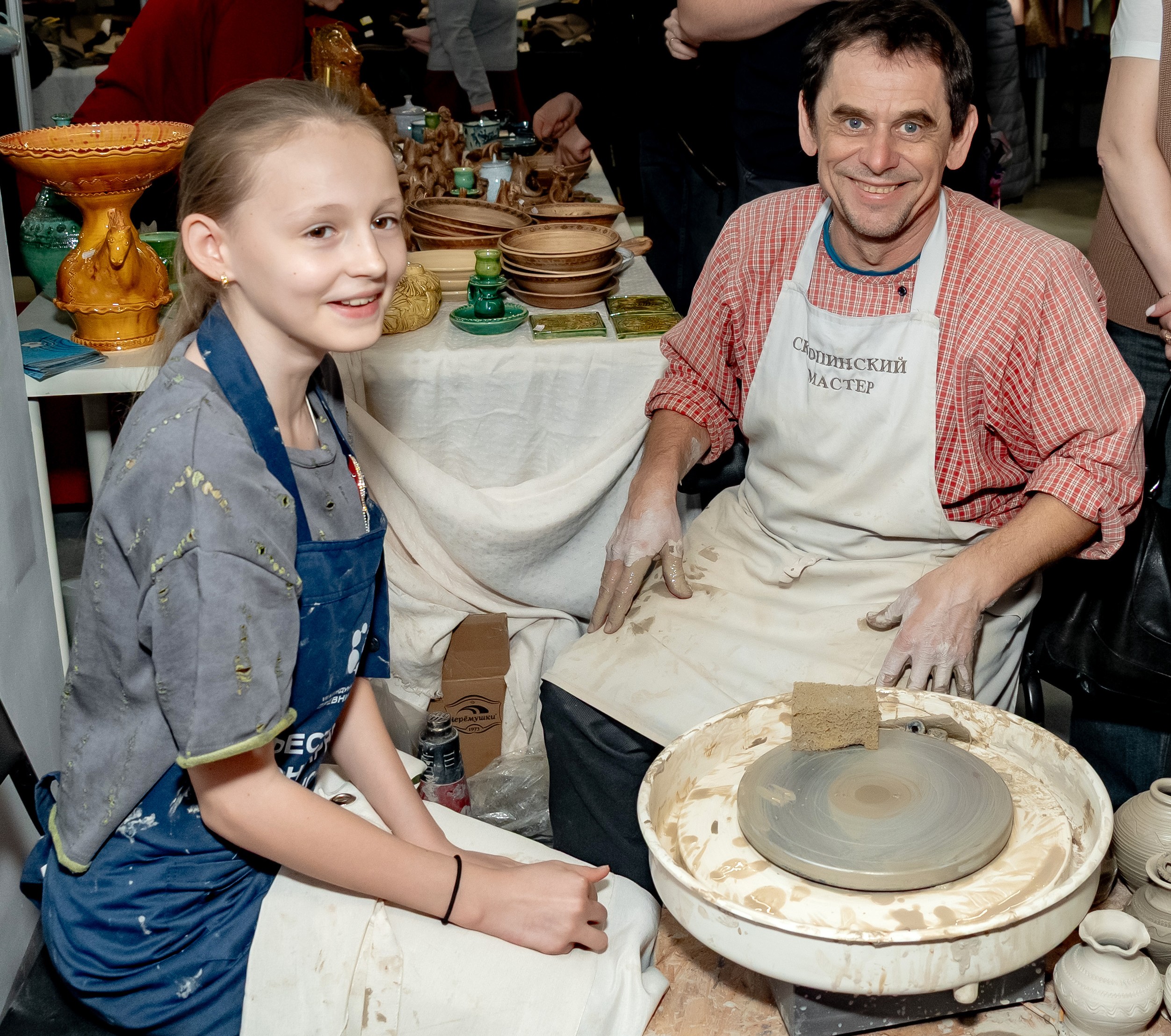 Члены союза художников России Ирина и Александр Якушкины специально прибыли на выставку из Рязанской области, чтобы познакомить горожан с традициями Скопинского гончарного промысла. В программе мастер-классов также были: создание обережной куколки из пряжи, декорирование полимерной глиной, роспись посуды, «пасхальный декор», создание картины в технике fluid art, изготовление авторских брошей со стеклянными стразами и традиционной ватной игрушки.