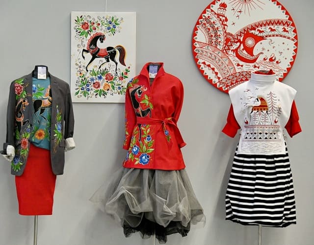 Гостей встречали легендарные гжель, хохлома, знаменитые пуховые платки из Оренбурга, городецкая финифть, деревянные изделия из Удмуртии, деревянная прялка с 200-летней историей, чудеса из стекла из города Гусь-Хрустальный, сказочной красоты ковры из Дагестана и множество других работ, отражающих богатство народных художественных промыслов России. Это особенно актуально в «Год единства народов России», объявленного указом президента в 2026-м.